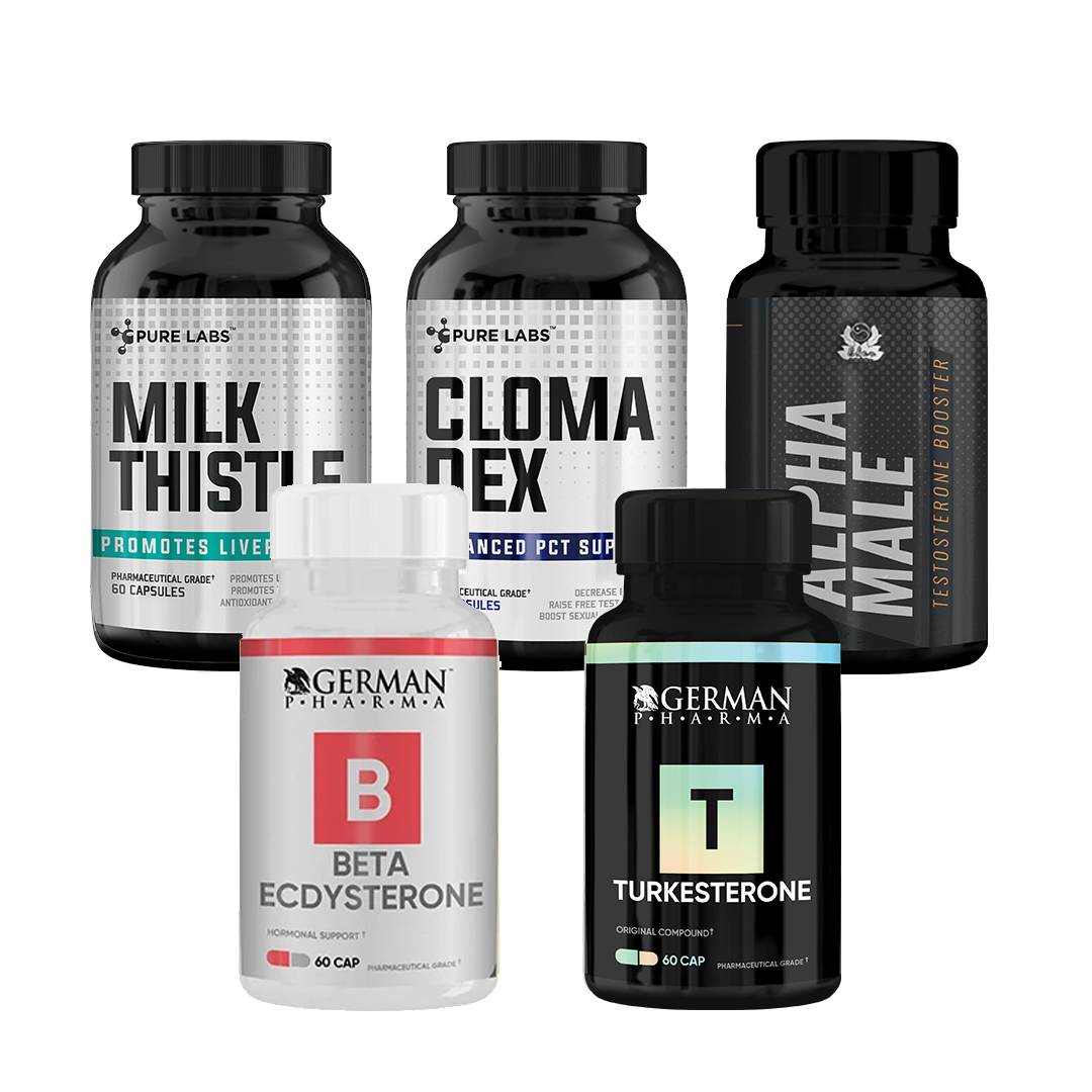 This 5 product stack delivers everything you need to build lean muscle safely and recover optimally. This stack includes 2 of the most effective natural muscle builders, on-cycle support, alpha male and our best-selling PCT. With the stack, you can expect to increase muscle size and strength over a 2 month period with a great sense of well-being, followed by optimal recovery.