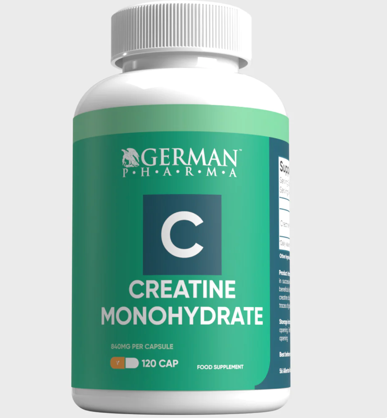 Creatine Monohydrate capsules by German Pharma, provide your body with 750mg of pure creatine monohydrate per vegetarian capsule.
